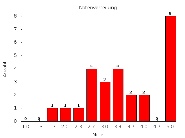 Auf dieser Seite finden Sie einige Statistiken zum Ergebnis der Klausur.