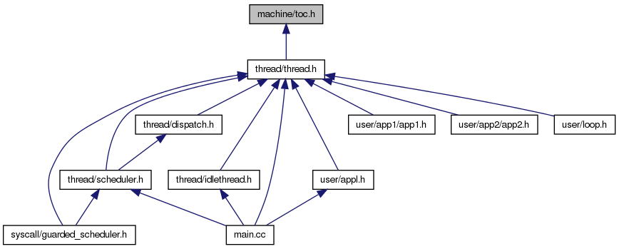 toc_go wird verwendet, um auf jeder CPU den ersten Thread überhaupt zu starten. Die Implementierung von toc_go muss in Assembler in der Datei toc.asm erfolgen. Sie muss als extern "C" deklariert werden, da sie als Assemblerfunktion nicht dem C++ Namemangeling unterliegt.