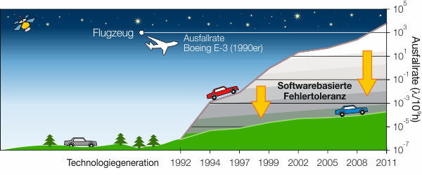 Ob wir kommunizieren, Geld überweisen oder zum Arzt fahren, Software ist aus dem täglichen Leben nicht mehr wegzudenken. Ihre Zuverlässigkeit ist dabei eine grundlegende Forderung in einer Vielzahl von Anwendungsfällen: von den Verkehrsmitteln über Medizintechnik bis zur Anlagenautomatisierung. Deren Fehlfunktion ist mindestens unangenehm, kostet meistens Geld und kann teilweise zu Gefahren für Leib und Leben führen. Neben der funktionalen Korrektheit der Systeme ist hierbei vor allem auch ein hohes Maß an Fehlertoleranz gegenüber äußeren Störeinflüssen wichtig. Ein aktuelles Problem stellt beispielsweise die durch die voranschreitende Miniaturisierung schwindende Zuverlässigkeit der Hardware dar. In der Folge eine der fundamentalsten Grundannahmen der Softwaretechnik in Gefahr: Die korrekte Ausführung von Programmcode durch das darunterliegende Rechensystem.