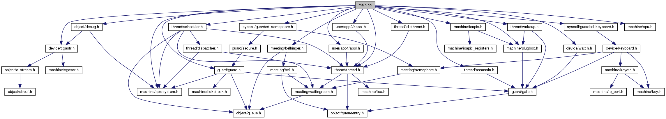 Include-Abhängigkeitsdiagramm für main.cc: