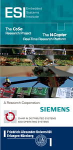 Ulbrich, Peter: Safety-critical Embedded Systems: From Theory to the (Flying) Real World. Vortrag: Lehrstuhl für Informationstechnik für Luft- und Raumfahrt, Universität Würzburg, 18.01.2011 Stichwörter:Redundanz, I4Copter, eingebettete Systeme, embedded Systems, Echtzeitsysteme, Quadrocopter, sicherheitskritische Systeme, CoSa, CoRed