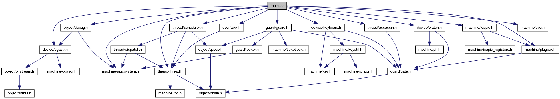 Include-Abhängigkeitsdiagramm für main.cc: