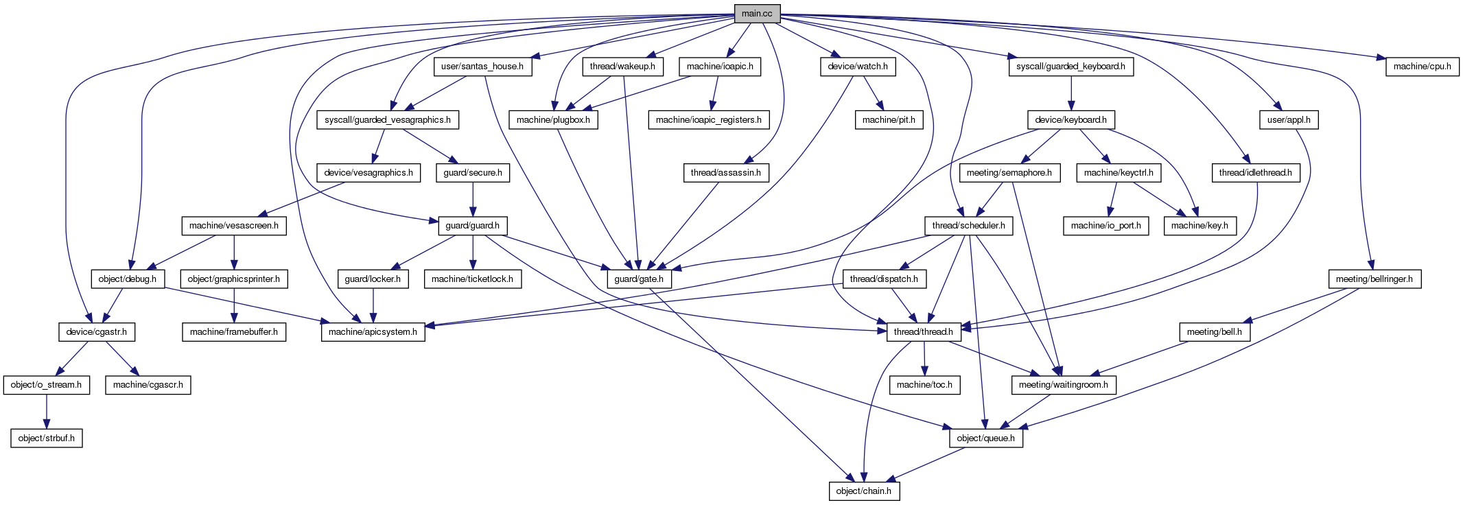 Include-Abhängigkeitsdiagramm für main.cc: